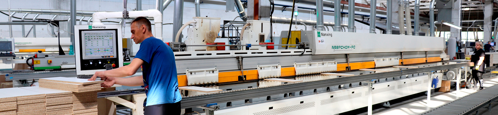 Компания приобрела и установила высокопроизводительное оборудование для раскроя, присадки, кромкооблицовки и прочих операций, выполняемых при производстве корпусной и мягкой мебели. Кромкооблицовочная линия, которая также установлена на площадке фабрики — от Nanxing.